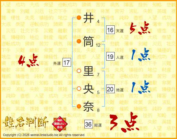 井筒里央奈さんの外運は17画の4点!