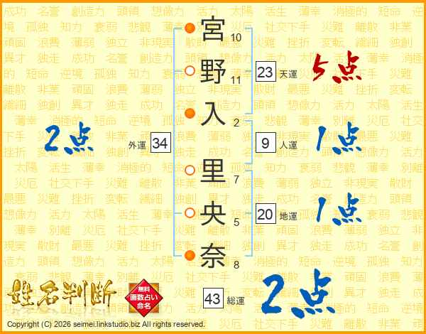 宮野入里央奈さんの外運は34画の2点!