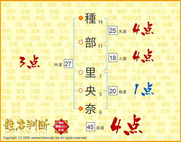 種部里央奈さんの総運は45画の4点!