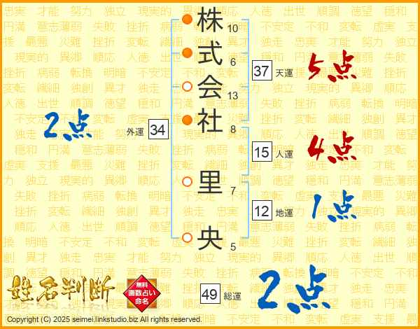 株式会社里央さんの天運は37画の5点!