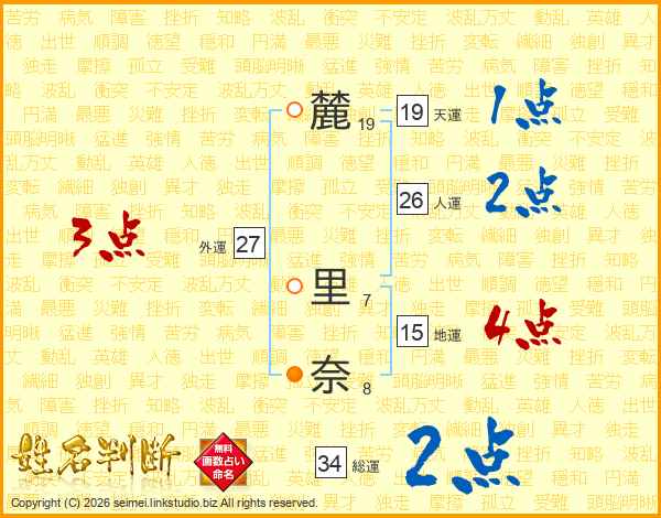 麓里奈さんの総運は34画の2点!