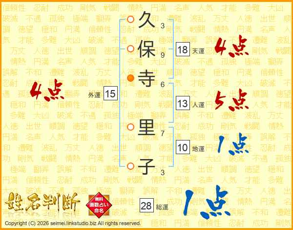 久保寺里子さんの天運は18画の4点!