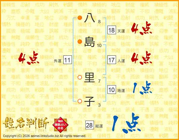 八島里子さんの総運は28画の1点!