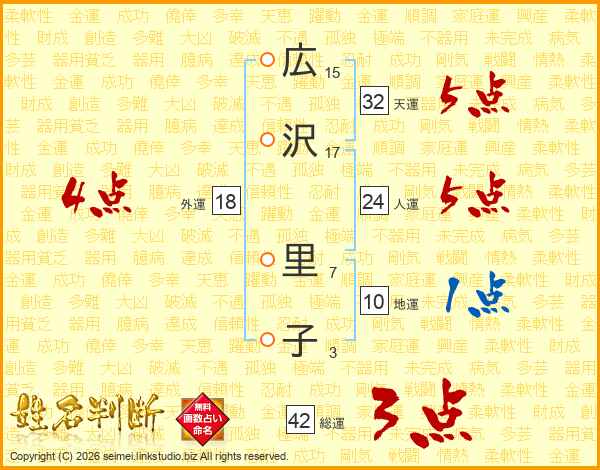 広沢里子さんの外運は18画の4点!