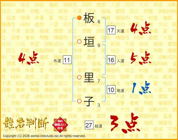 板垣里子さんの天運は17画の4点!