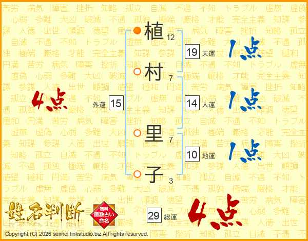 植村里子さんの総運は29画の4点!