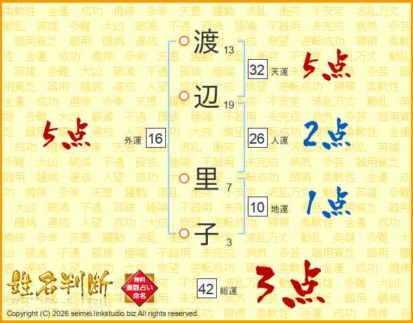 渡辺里子さんの外運は16画の5点!
