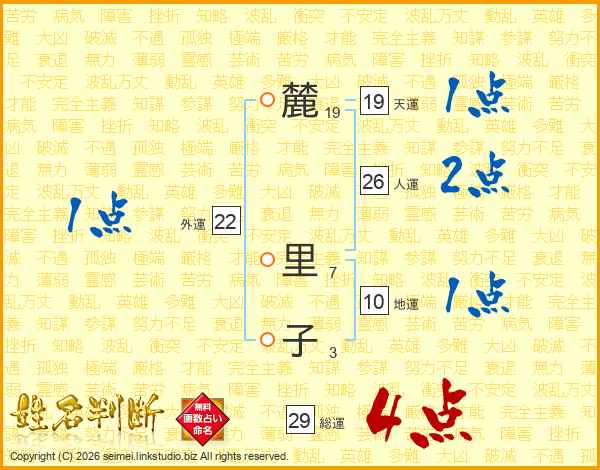 麓里子さんの人運は26画の2点!