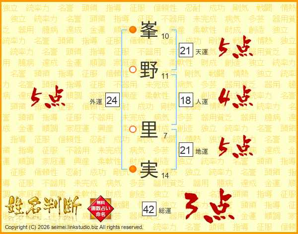 峯野里実さんの外運は24画の5点!