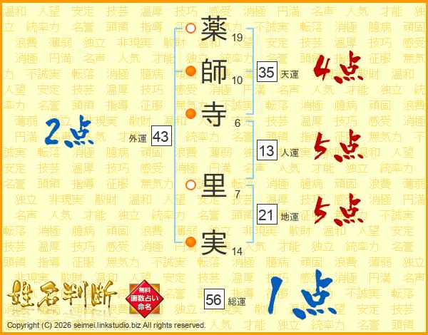 薬師寺里実さんの外運は43画の2点!