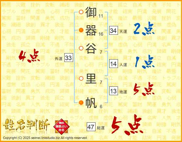 御器谷里帆さんの総運は47画の5点!