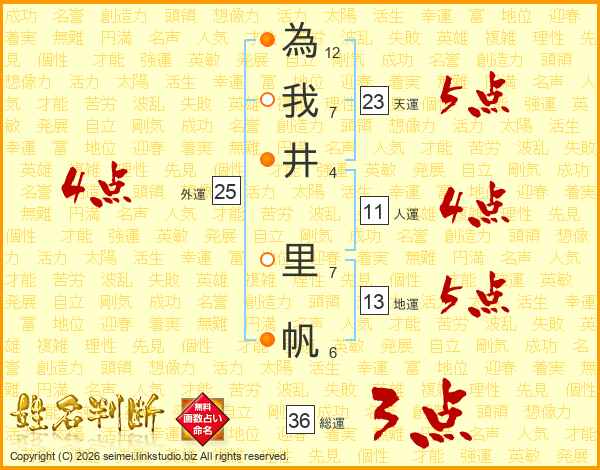 為(12画)我(7画)井(4画) 里(7画)帆(6画)