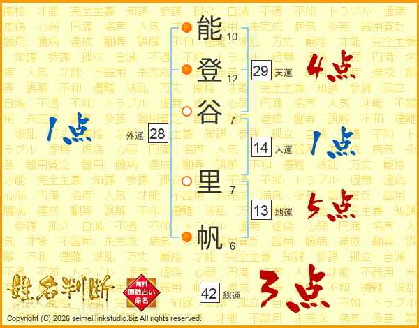 能登谷里帆さんの天運は29画の4点!
