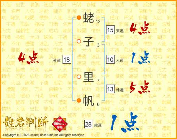 蛯子里帆さんの総運は28画の1点!