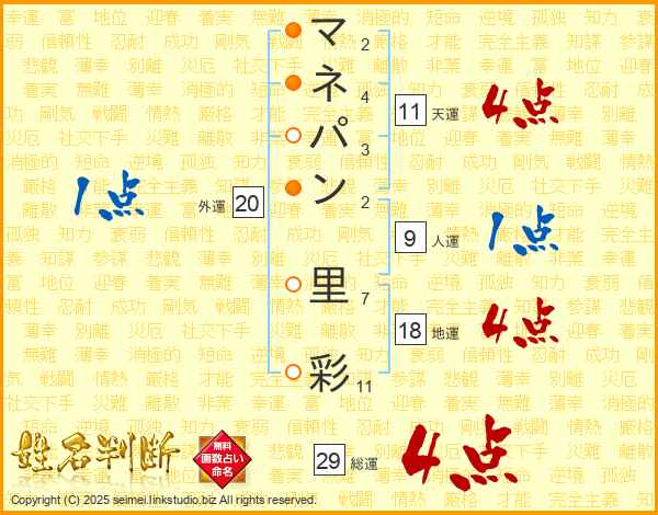 マネパン里彩さんの総運は29画の4点!