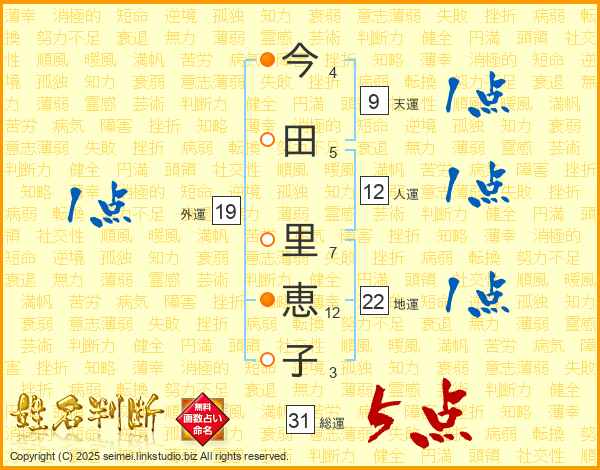 今田里恵子さんの総運は31画の5点!