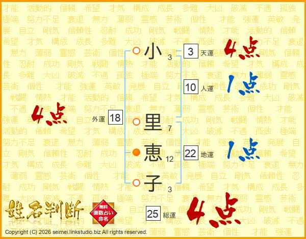 小里恵子さんの総運は25画の4点!