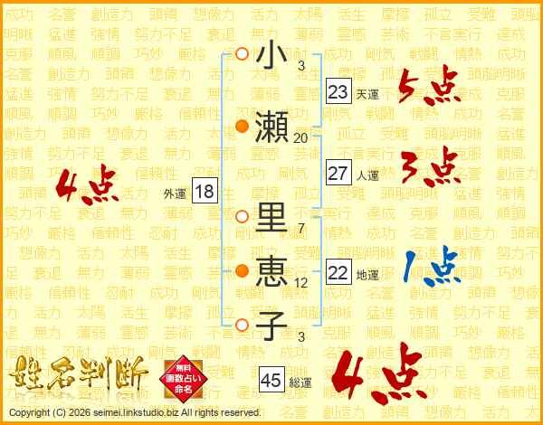 小瀬里恵子さんの総運は45画の4点!