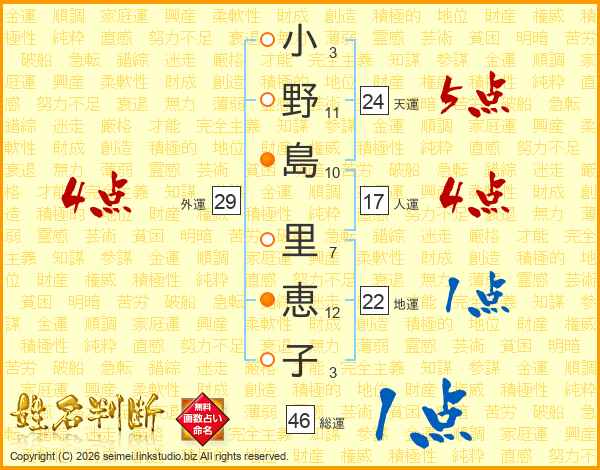 小野島里恵子さんの総運は46画の1点!