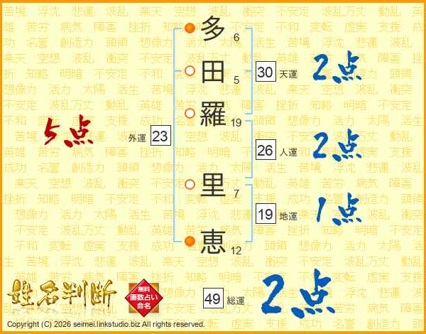 多田羅里恵さんの総運は49画の2点!