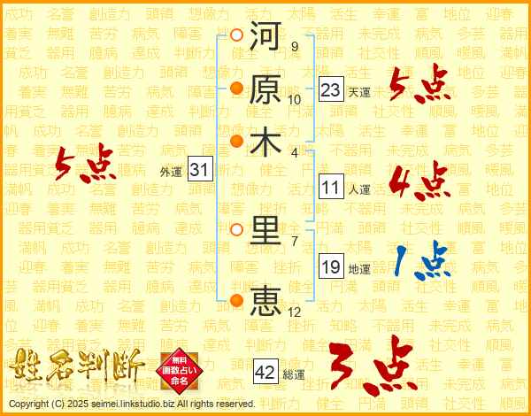 河原木里恵さんの天運は23画の5点!
