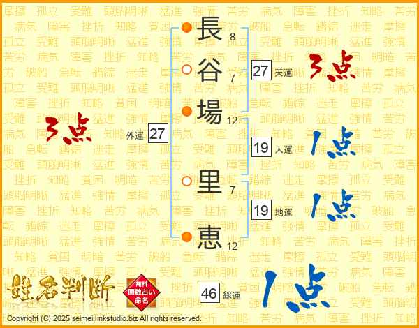 長谷場里恵さんの総運は46画の1点!