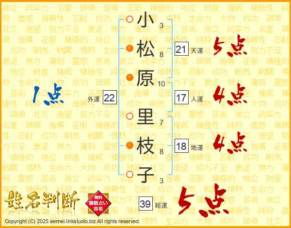 小(3画)松(8画)原(10画) 里(7画)枝(8画)子(3画)