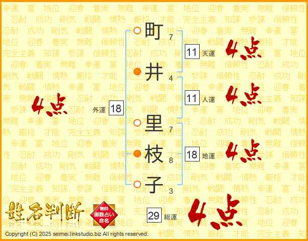 町(7画)井(4画) 里(7画)枝(8画)子(3画)