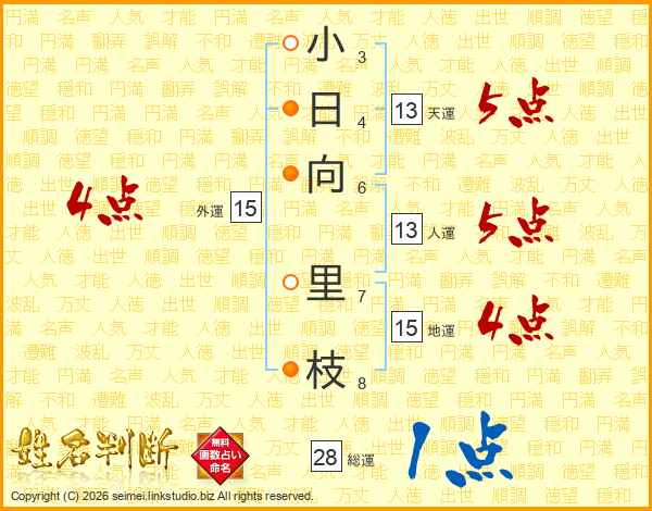 小日向里枝さんの人運は13画の5点!