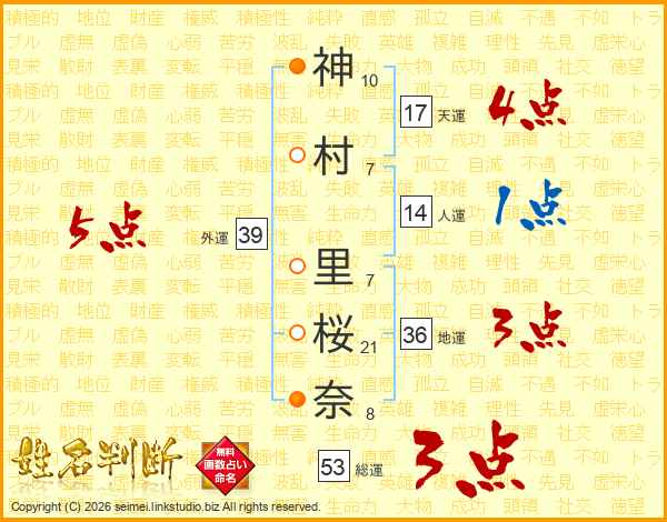 神村里桜奈さんの外運は39画の5点!