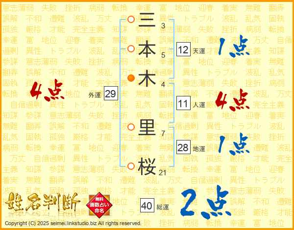三本木里桜さんの人運は11画の4点!