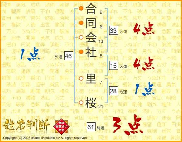 合同会社里桜さんの天運は33画の4点!