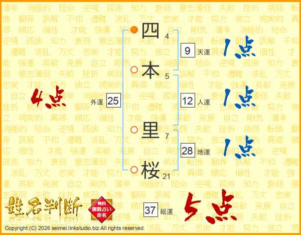 四本里桜さんの総運は37画の5点!
