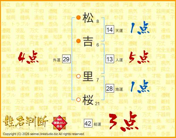 松(8画)吉(6画) 里(7画)桜(21画)