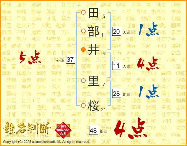 田(5画)部(11画)井(4画) 里(7画)桜(21画)