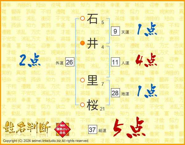 石(5画)井(4画) 里(7画)桜(21画)