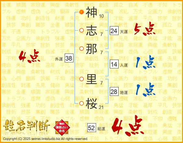 神志那里桜さんの総運は52画の4点!