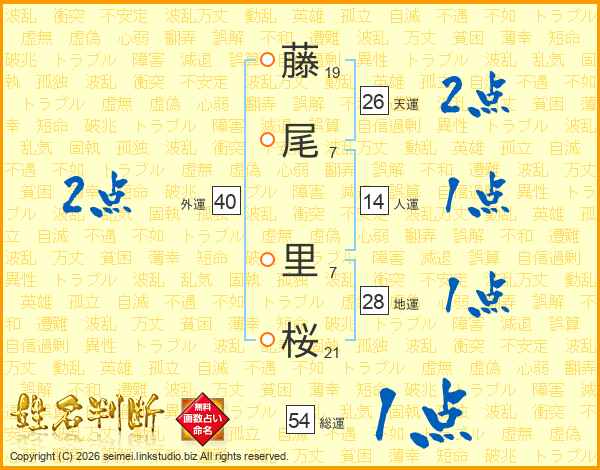 藤(19画)尾(7画) 里(7画)桜(21画)