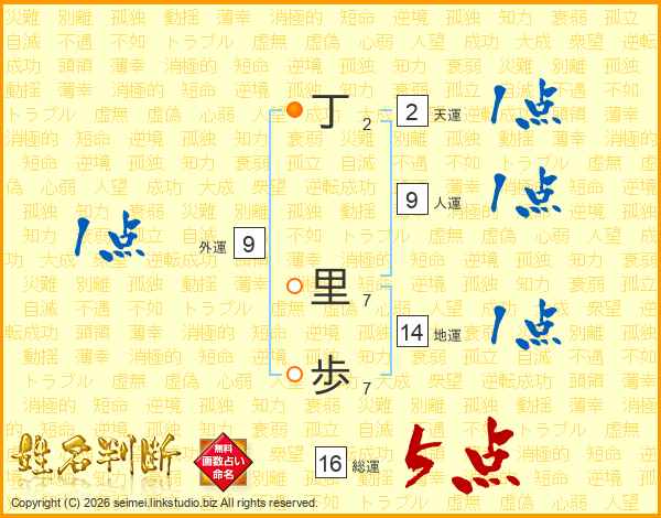 丁里歩さんの総運は16画の5点!