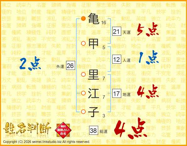 亀甲里江子さんの総運は38画の4点!