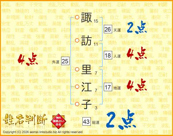 諏訪里江子さんの総運は43画の2点!