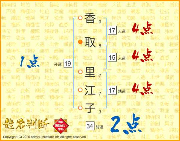 香取里江子さんの天運は17画の4点!