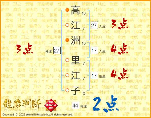 高江洲里江子さんの総運は44画の2点!