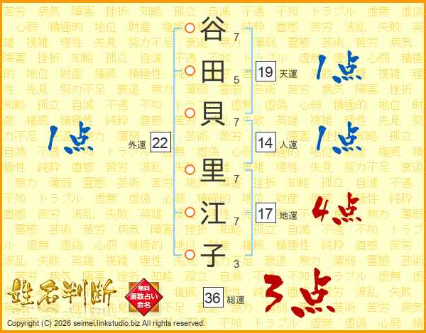谷田貝里江子さんの天運は19画の1点!