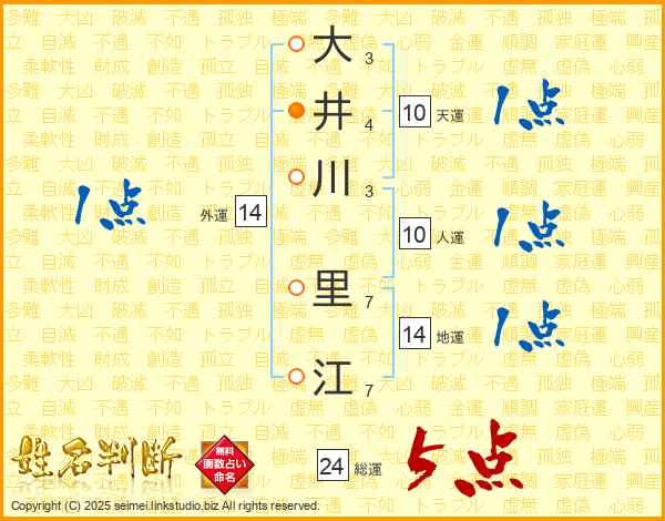 大(3画)井(4画)川(3画) 里(7画)江(7画)