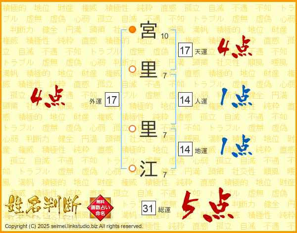 宮里里江さんの外運は17画の4点!