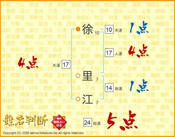 徐里江さんの総運は24画の5点!