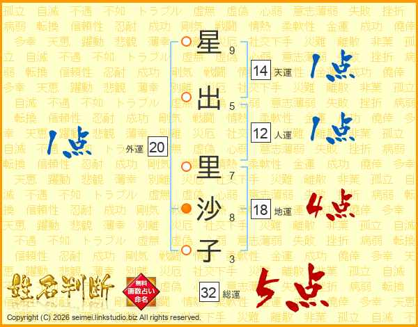星出里沙子さんの総運は32画の5点!