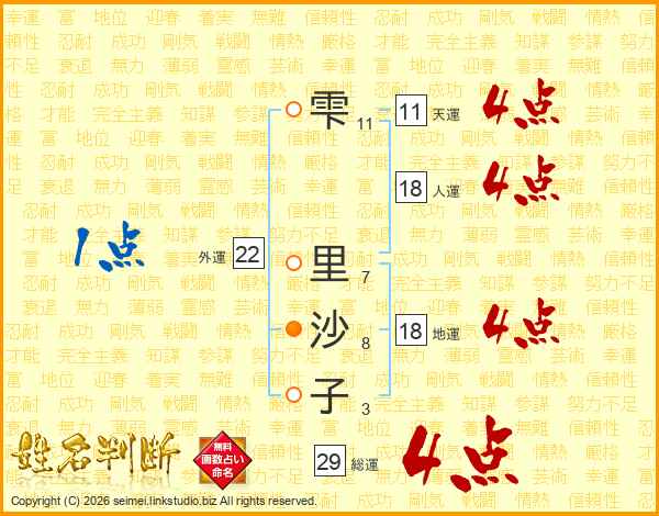 雫里沙子さんの総運は29画の4点!
