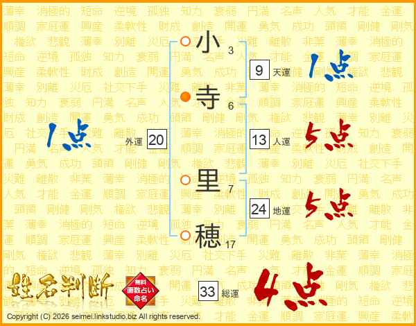 小寺里穂さんの総運は33画の4点!